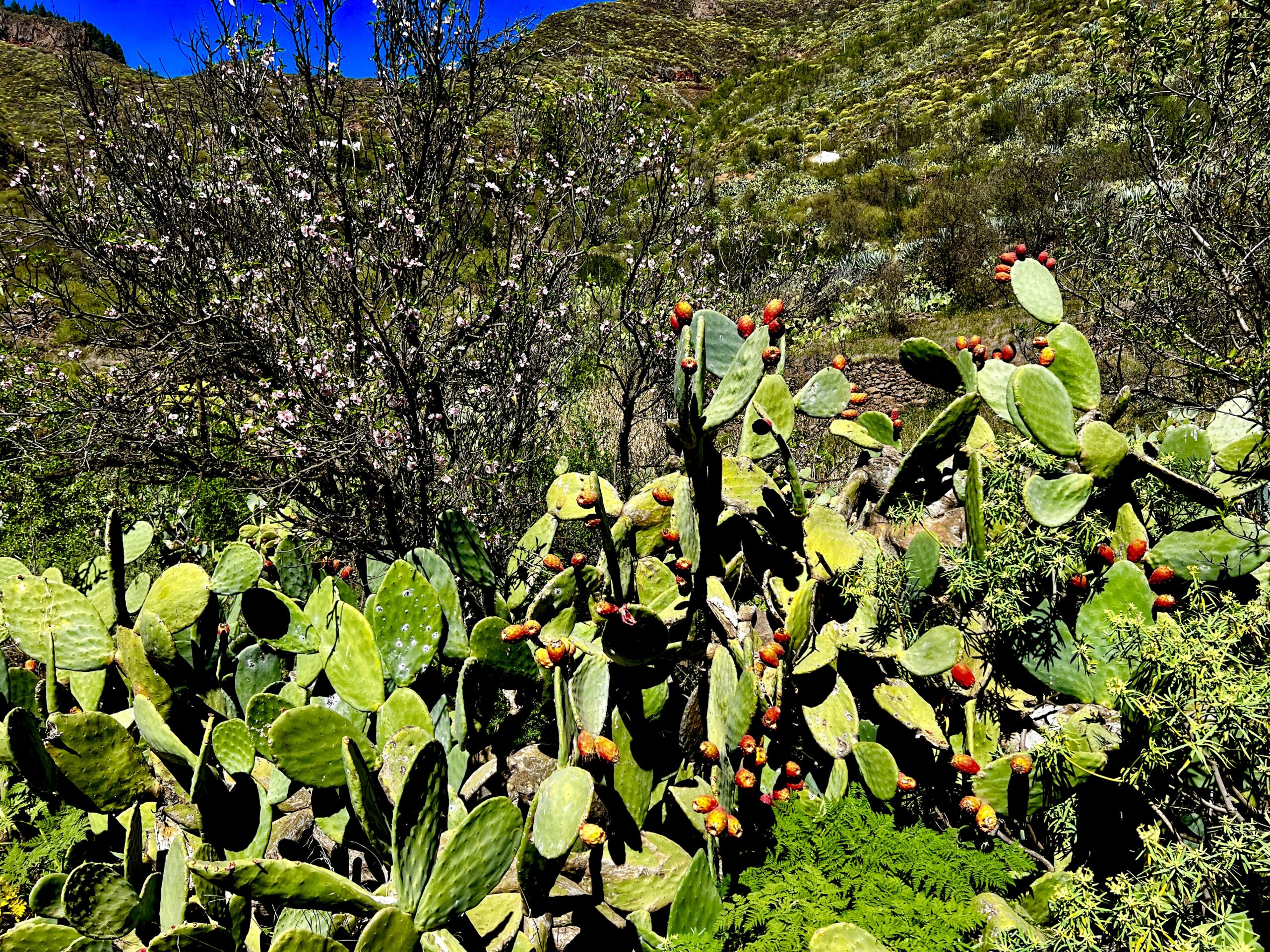 Eine erblühende Pflanzenwelt und ein traumhaft angelegter Wanderweg führt uns nach in ca. 2,5 Stunden wieder nach oben. Orientierungssinn ist hier eigentlich nicht mehr erforderlich. Die Beschilderung ist sehr gut, der Aufstieg erfordert gute Kondition und ausreichend Wasser an so warmen Tagen wie heute. Zusammengefasst: Eine grandiose Wanderung über 5 Stunden, 14,3 km und ca. 750 Meter im Ab- und Aufstieg. Wir kommen ganz sicher noch einmal in diese herrliche Wanderregion nach Gran Canaria.